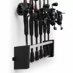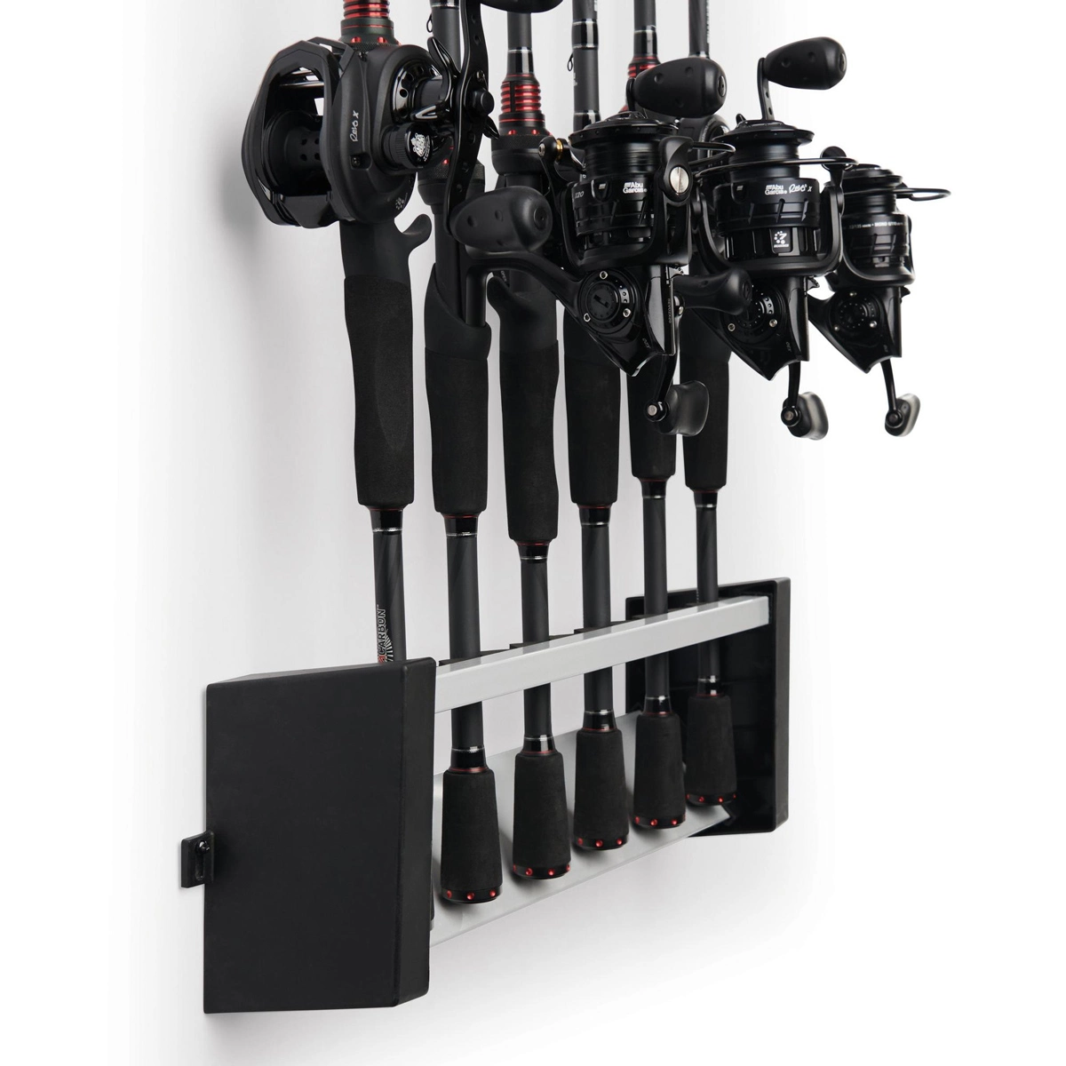 Het Abu Garcia Vertical 11 Rod Rack biedt ruimte aan maar liefst 6 verticaal opgeborgen hengels met molen, of 11 hengels zonder molen! Dit hengelrek bestaat uit 2 separate aluminium delen die je eenvoudig aan de muur bevestigt dankzij het meegeleverde montagemateriaal. Deze hengelsteun biedt optimale bescherming aan jouw kostbare hengels! Het Abu Garcia Vertical 11 Rod Rack is onmisbaar in jouw schuur, garage of mancave!