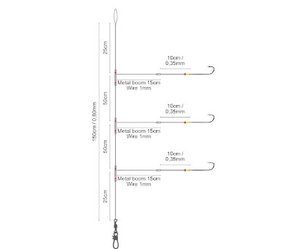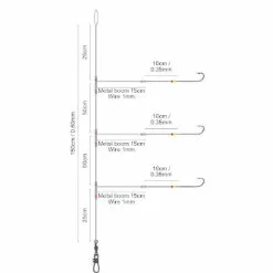 Deze paternosters van Spro zijn supermakkelijk in gebruik. Je bindt de lijn aan je hoofdlijn, prikt je aas op de vlijmscherpe haken en je kan vissen. De onderlijn is handgebonden uit stevig fluorocarbon wat je lijn nagenoeg onzichtbaar maakt onder water. De reflecterende kralen op de zijlijnen bieden je aas extra aantrekkelijk aan en trekken snel de aandacht van de vis. De metalen afhouders zorgen ervoor dat je aas niet in je lijn draait. Je kan deze onderlijnen gebruiken bij het vissen vanuit een boot of vanaf de kant