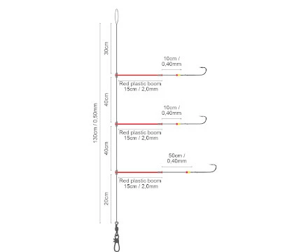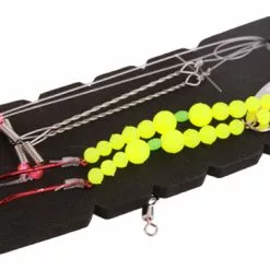 Deze paternosters van Spro zijn supermakkelijk in gebruik. Je bindt de lijn aan je hoofdlijn, prikt je aas op de vlijmscherpe haken en je kan vissen. De onderlijn is handgebonden uit stevig fluorocarbon wat je lijn nagenoeg onzichtbaar maakt onder water. De reflecterende kralen op de zijlijnen bieden je aas extra aantrekkelijk aan en trekken snel de aandacht van de vis. De rode plastic afhouders zorgen ervoor dat je aas niet in je lijn draait. Je kan deze onderlijnen gebruiken bij het vissen vanuit een boot of vanaf de kant.