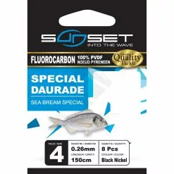 Deze kant en klare onderlijnen van Sunset brengen jou alle gemak en zekerheid. Ze zijn 1,5 meter lang en gemaakt van 100% fluorocarbon. Ze zijn eveneens voorzien van een lus voor een gemakkelijke en snelle montage. Het voordeel van fluorocarbon is dat het nagenoeg dezelfde brekingsindex heeft als het water en daardoor zo goed als onzichtbaar is. Ideaal voor snel schrikkende vissen. De haak is voorzien van een speciale zwarte nikkel coating voor extra duurzaamheid. Deze onderlijnen zijn er in verschillende uitvoeringen zodat er altijd eentje is die bij jouw type visserij past!