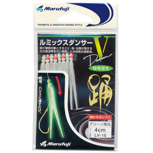 De Tubertini Marufuji Luminous Bait zijn onderdelen voor een makreel paternoster. Deze onderdelen zijn gemaakt van een zeer zacht, elastisch en synthetisch materiaal. Door de kleine doorboorde bol in verschillende maten en kleuren kan je de onderdelen makkelijk op de lijn schuiven. Deze kunstaasjes zijn bedoeld om over haken te worden geschoven. De Marufuji Luminous Bait zal met zijn kronkelende bewegingen onderwater de presentatie van natuurlijk aas imiteren. Ideaal voor het samenstellen van paternosters voor het vissen op makreel.