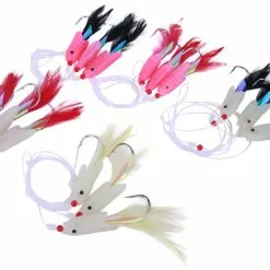 Dit Ultimate Cod Pack bestaat uit 5 kant-en-klare paternosters die gebruikt worden voor het vissen op kabeljauw. Deze onderlijnen zijn elk voorzien van 3 vlijmscherpe haken waaraan kleurrijke veren gebonden zijn en een imitatie van een aasvisje. De paternosters zijn ‘ready-to-fish’ dus je kunt meteen aan de slag!