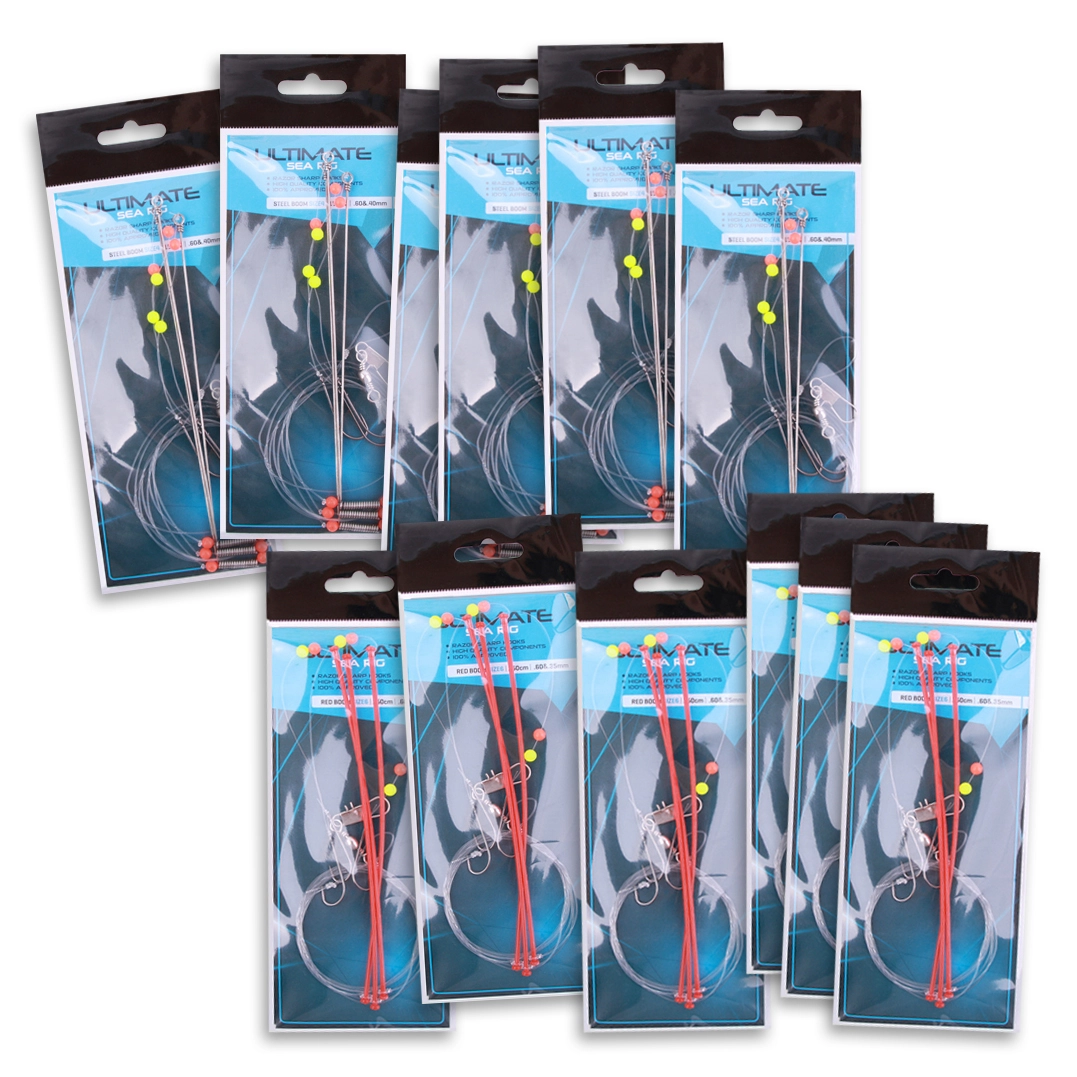 Je kunt ze natuurlijk zelf knopen maar deze Ultimate Sea Rigs voldoen aan de hoogste standaard en besparen je een boel gedoe op het strand. En met deze gevarieerde set met meerdere haakmaten heb je altijd de goede onderlijn voorhanden. De zeevisonderlijnen zijn voorzien van drie vlijmscherpe haken, metalen of kunststof afhouders en kraaltjes voor extra attractie. Deze zeevisonderlijnen zijn geschikt voor het vissen op tal van verschillende zeevissoorten vanaf de kant of vanuit een boot. Een must voor iedere strandvisser!